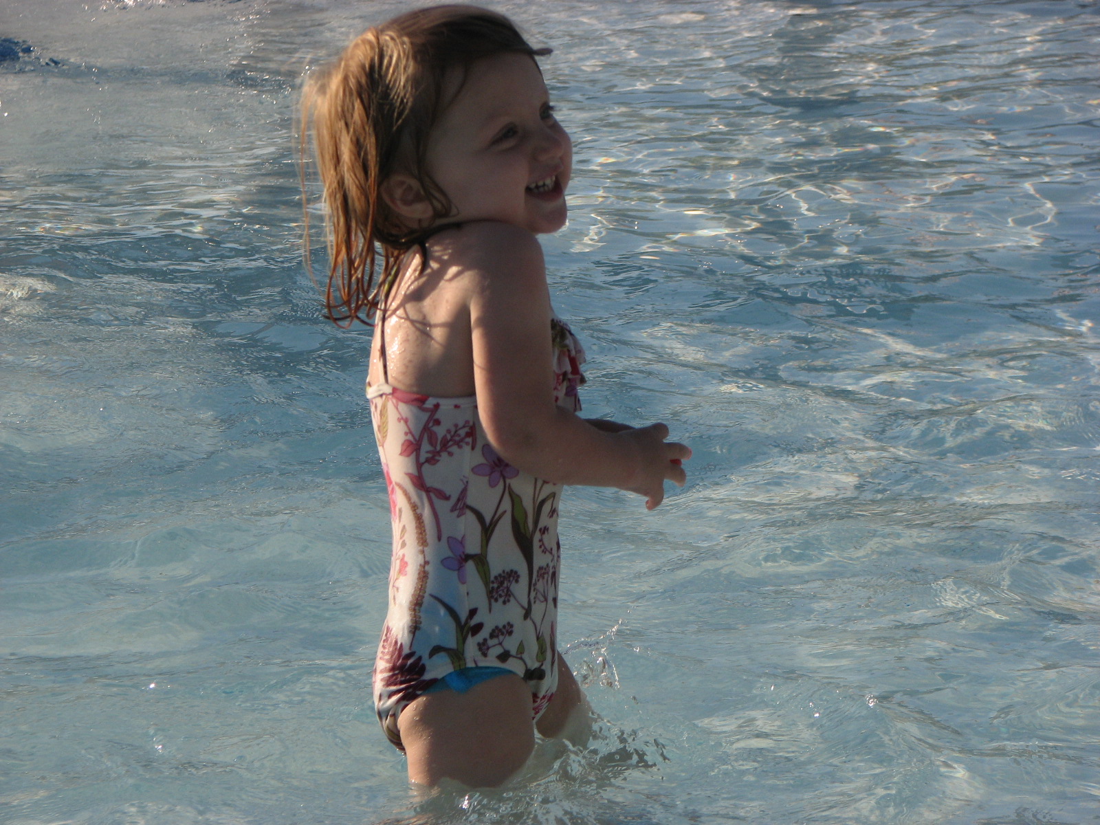 and just like her first birthday, we partied at the pool after dinner but before cake. she still loves the water, although she's not so fearless as she once was. (which is much more manageable when there are two kids to watch.)